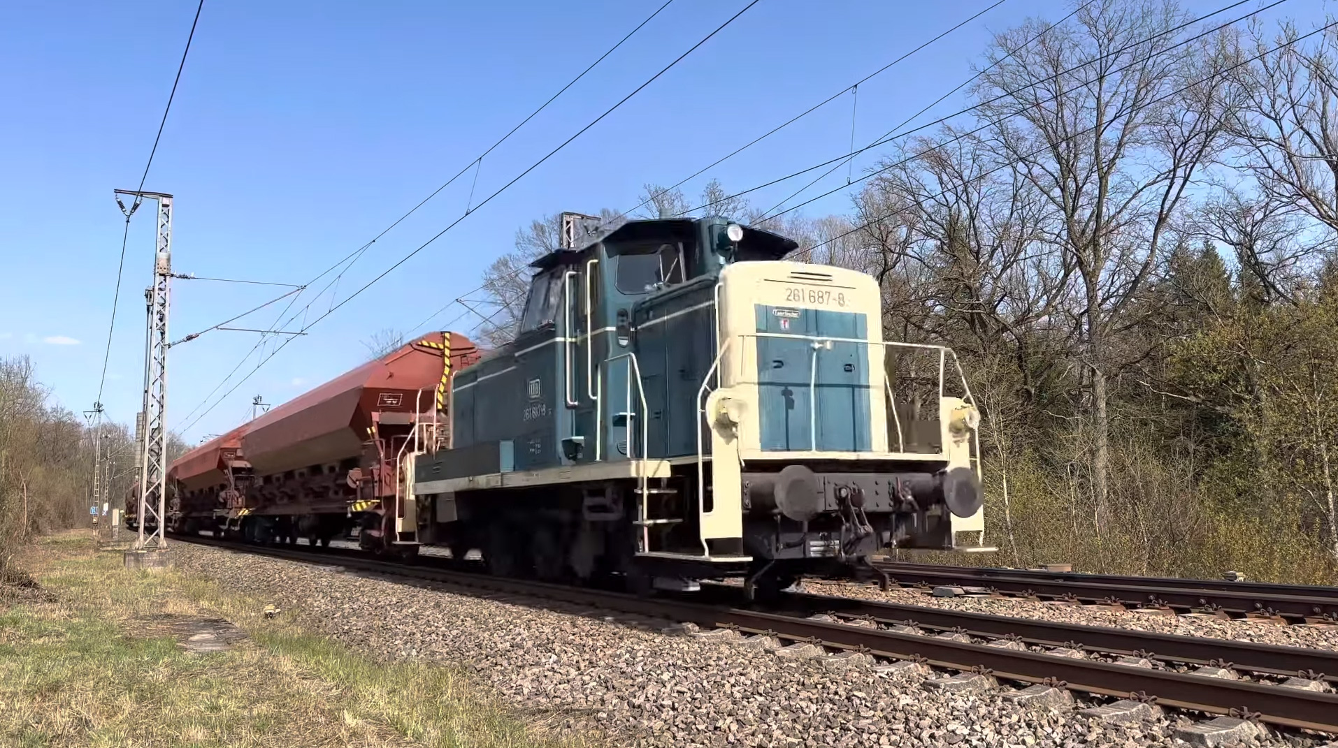 Wunderschöne V60 (DB BR261) bringt Düngerwagen nach Neuoffingen u. verschwindet im Lokschuppen